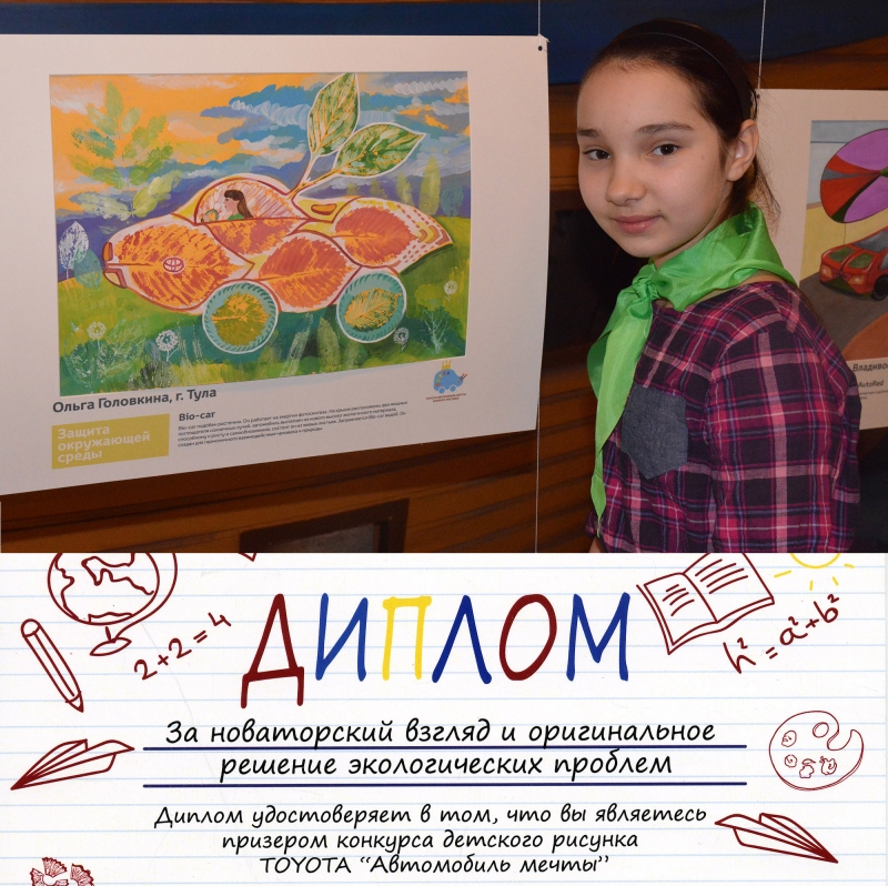ОЛЬГА ГОЛОВКИНА- ПОБЕДИТЕЛЬ МЕЖДУНАРОДНОГО КОНКУРСА ДЕТСКОГО РИСУНКА TOYOTA «АВТОМОБИЛЬ МЕЧТЫ»