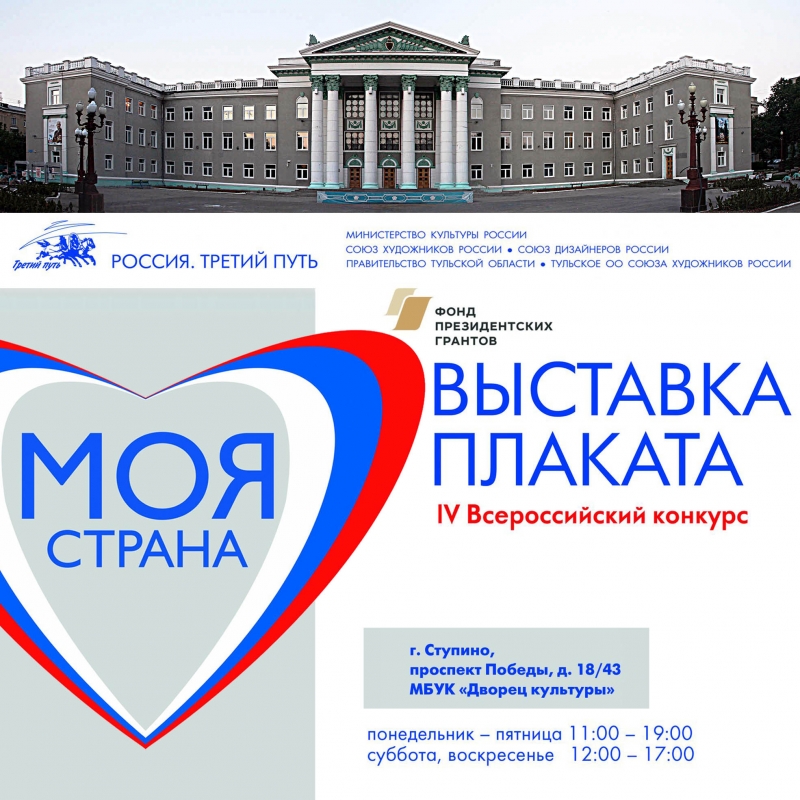 Сегодня 29 ноября 2019 г. в 15.00 состоится открытие выставки IV Всероссийского конкурса плаката «МОЯ СТРАНА»е по адресу: Красноармейский пр-кт, д.16, выставочный зал Тульского музея изобразительных искусств.
