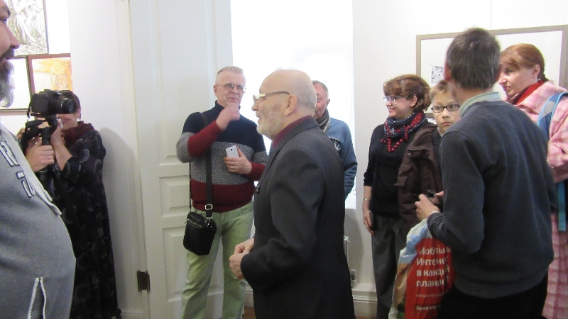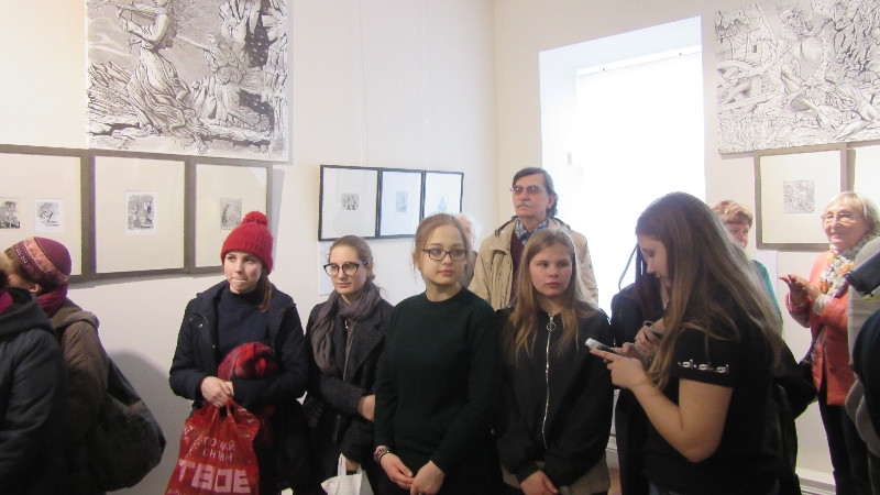 Одними из тех, кто пришел познакомиться с экспозицией работ художника, были старшие классы Тульской детской художественной школы имени В.Д. Поленова. Художник с большой охотой общался с гостями: рассказывал о своем творчестве, о специфике гравюры на дереве, обращался к классикам искусства.