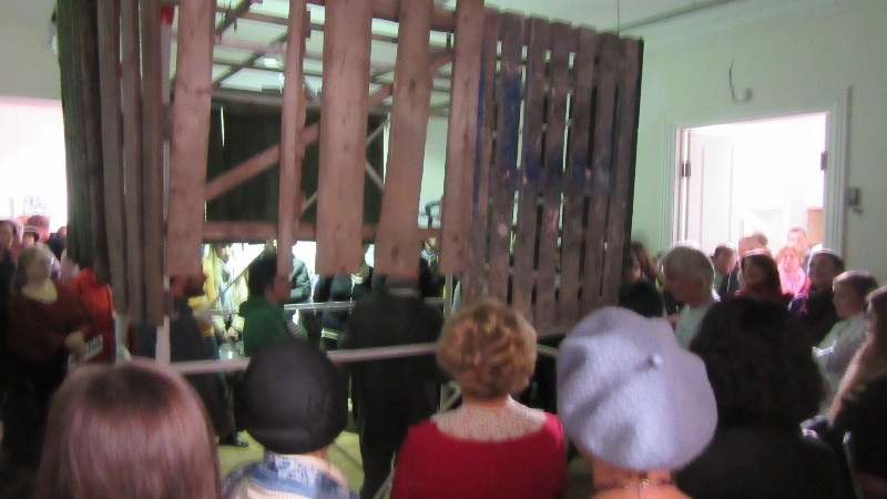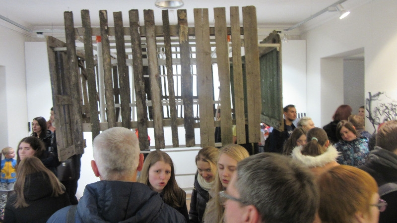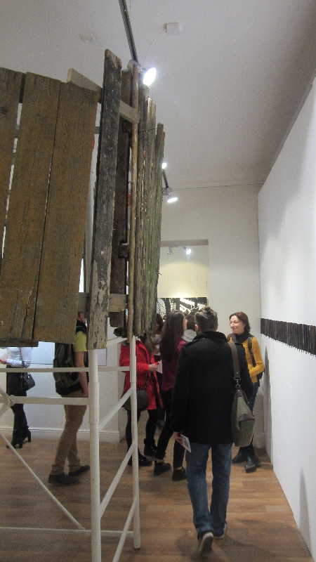 Небольшое пространство зала было решено не просто оригинально, – неожиданно! Первое, что попадалось на глаза посетителям – изгородь с закрытыми воротами налево и направо, а прямо… тоже предел – сооружение из кольев и прутьев, подобное клети. Ни дороги, ни пути. И «куда бечь»?