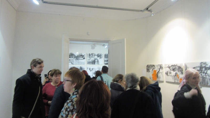 Все изображения на этой выставке – пейзажи (есть вполне узнаваемые, тульские) с вереницами переплетенных деревьев и петляющими лентами дорог. Также, на выставке представлен ряд орнаментальных композиций. Среди работ встречаются крупные фрагменты, которые «только «смахивают» на реальность, но не кажутся ей». Приглушенный свет, дополнительная подсветка, маленькие проходные комнаты, которые «можно перебирать как четки»… Взгляд художницы, появляющийся время от времени в толпе и быстро исчезающий под широкими полями странной шляпы…