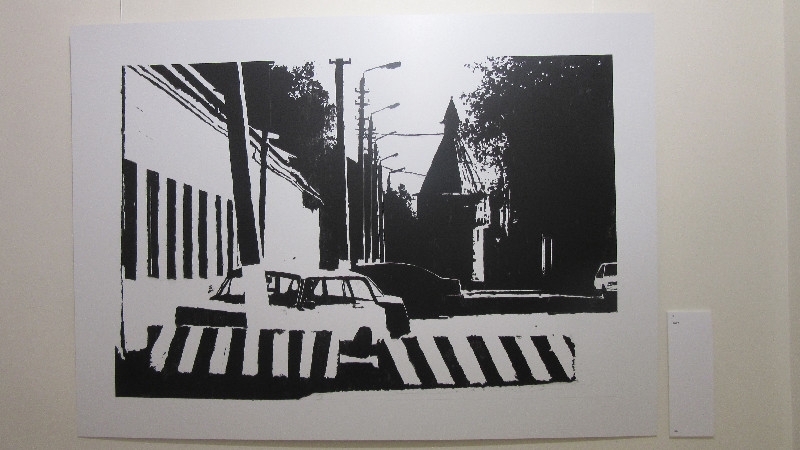 «ПРИБЕЖИЩЕ» можно было найти, преодолев комнату с препятствием и все-таки добраться до цели – наконец-то увидеть произведения искусства. Но и тут ожидали преграды и неясность! Разномасштабные работы визуально складывались в причудливый черно-белый узор с акцентами ярких оранжевых пятен. Будто маячит что-то, манит, дразнит, прячется…