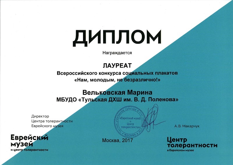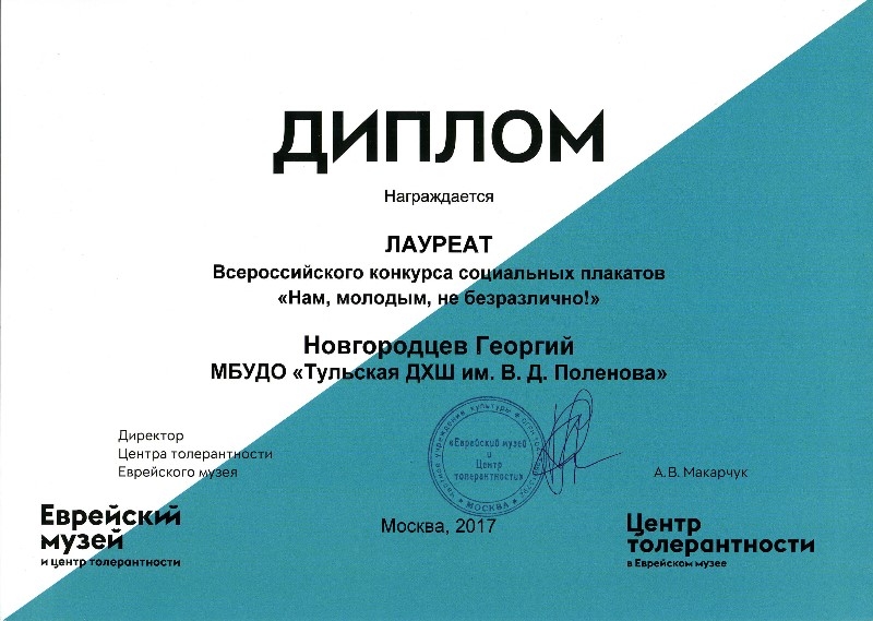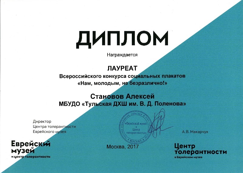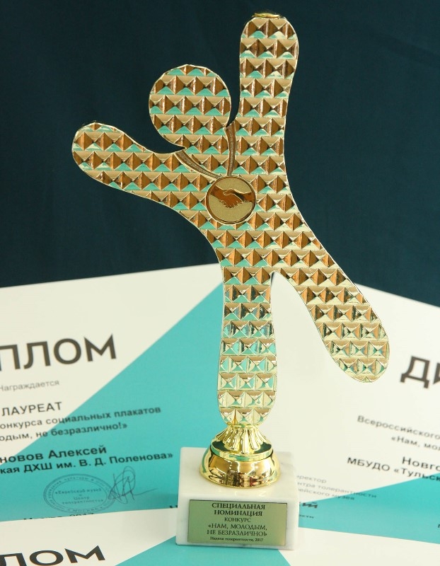 100 лучших работ отобраны для выставки, которая открылась 16 ноября в Международный день толерантности. Награды победителям вручили - Галина Меркулова, председатель Общероссийского профсоюза образования, Юрий Быкадоров, начальник управления Молодежных проектов и программ Федерального агентства по делам молодежи, и Анна Макарчук, директор Центра толерантности.