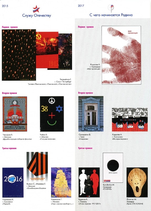 С 2012 года было проведено 3 конкурса под девизами: в 2013 году – «Держава. Воля. Вера», в 2015 году – «Служу Отечеству!», в 2017 году – «С чего начинается Родина». На конкурс были присланы тысячи работ из регионов России и десятков зарубежных стран. Выставки лучших плакатов проекта были показаны во многих городах России и за ее пределами.