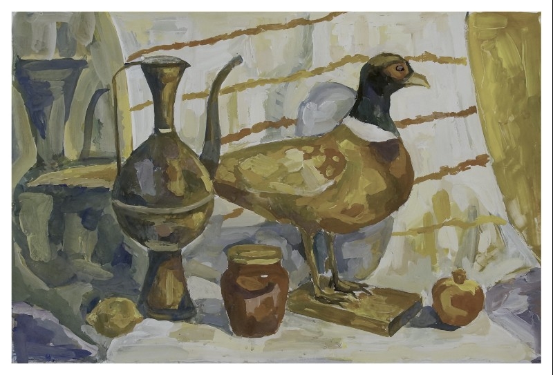 6. Максимова_Натюрморт с птицей. Б., гуашь, 42х60. 2018 г.