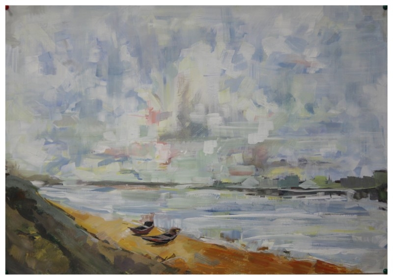 10. Захарова_Речной простор. Пейзаж. Б., гуашь, 42х60 см. 2018 г.