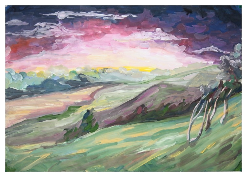 20. Лядова_Закат. Пейзаж. Б.,гуашь, 42х60 см. 2018 г.