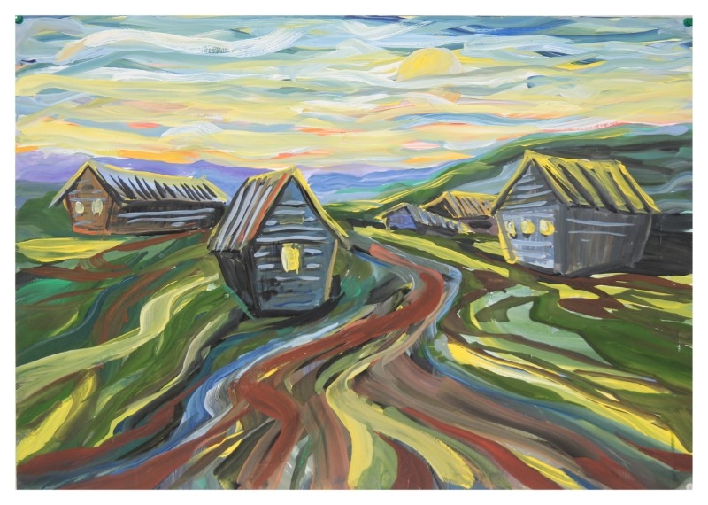 23. Лядова. Северная деревня. Пейзаж. Б., гуашь, 42х60 см. 2018 г.