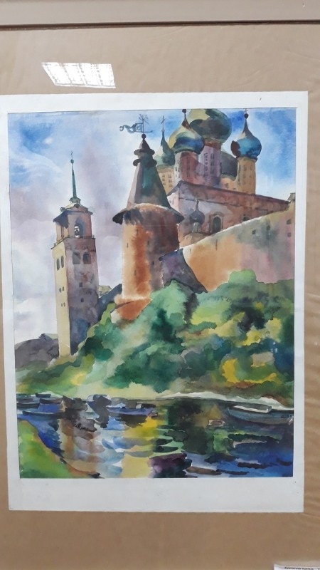 Выставка В.И. Бочарова - замечательна. Работы поражают своей легкостью, мастерством исполнения, где почти игровым, единым касанием кисти, словно наудачу, мастер передает сложнейшие формы и пропорции средневековых храмов русского Севера, изящные переливы сияющих на солнце скал и дворцов Крыма. Легкие пастельные штрихи Бочарова – и вот словно из тумана сотканная перед нами предстает загадочная Ясная Поляна, не похожая ни на чью больше. Мастеру всегда удается передать дух места, он нигде не повторяется: ни в цвете, ни в движении кисти. Позавидовать можно той лихости, с которой Бочаров пишет серое небо – через многокрасочные переливы акварели, серую каменную башню вдруг, словно смеясь, пишет в свету мазком изумрудной зеленой, а в тени – откровенным краплаком. И ничего не скажешь – это точно. Это виртуозно. Это красиво. Среди всего архитектурно-акварельного великолепия вдруг словно драгоценность –трогательная карминовая «Спящая», портрет жены художника.