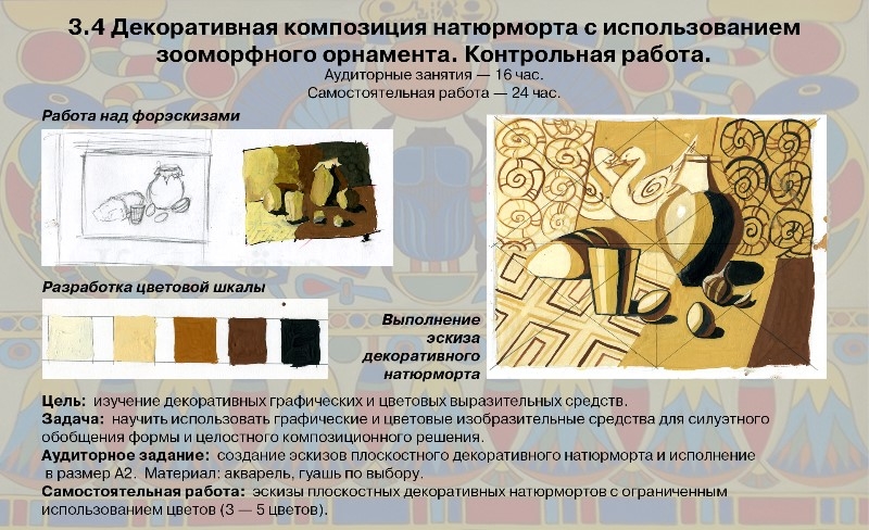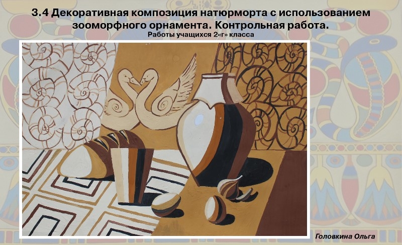 3.4 Декоративная композиция натюрморта с использованием зооморфного орнамента. Контрольная работа.