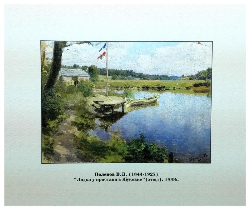 «Одним из неожиданно больших праздников было появление на выставках первых интимных пейзажей Поленова в середине 70-х годов, явившихся неожиданно ново, свежо, проникнуто правдой, тонким музыкальным лиризмом и изящной техникой», — писал в ту пору Остроухое. Поленов явился родоначальником новой русской живописи, дав жизнь лирическому пейзажу. Наряду с известнейшими в ту пору поленовскими пейзажами была масса натурных этюдов, написанных в разные годы, но зритель их видел редко - «Старый дом в Ольшанке» 1870-е, «Лодка у пристани в Жуковке» 1882, «Вид из старого Бехова» 1891, «Церковь Федора Стратилата в Москве» 1892. Принесли ему известность и большие осенние пейзажи «Осень в Абрамцеве» 1890 и «Золотая осень на Оке» 1893.