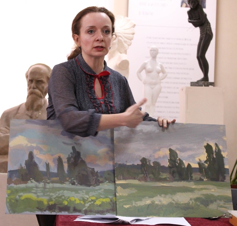 Во вступительном слове Евтеев К. И. рассказал о пленэре, как одном из важнейших этапов в подготовке художника. Опытом работы по организации выездного пленэра в город Белев и особенностями изображения городского пейзажа поделился преподаватель Я. Н. Куравский. Преподаватель Ж. Г. Цинман рассказала о практических навыках изображения ландшафтного пейзажа на примере выездного пленэра в поселок Селиваново Щекинского района. В. И. Бочаров рассказал о материалах и их значении и роли в работе на пленэре.