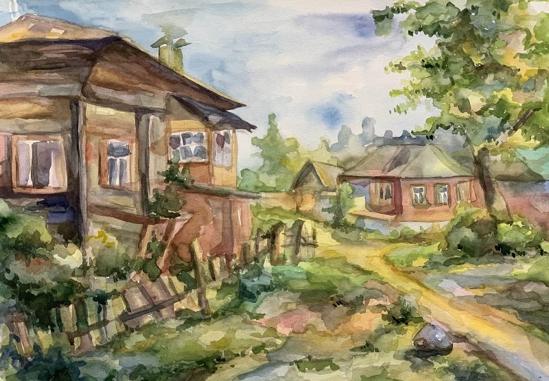 9. Фёдорова Светлана, 14 лет Тульская ДХШ им. В.Д. Поленова «В деревне» 2018 г. с. бумага, акварель Преподаватель Исмаилова Лариса Султанмуратовна