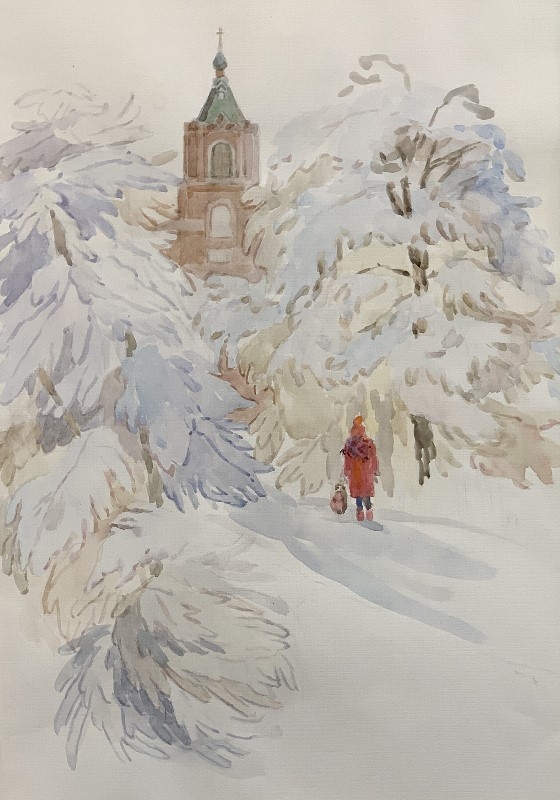 10. Волкова Мария, 15 лет Тульская ДХШ им. В.Д. Поленова «Зимой» 2018 г. с. бумага, акварель Преподаватель Ковалёва Ирина Григорьевна
