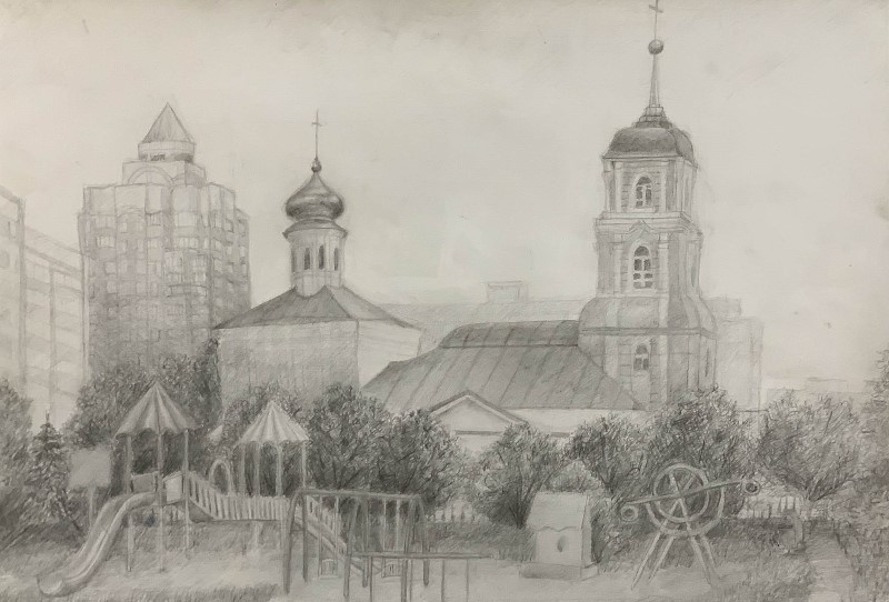 12. Беляева Варвара, 14 лет Тульская ДХШ им. В.Д. Поленова «Во дворе школы» 2018 г. с. бумага, карандаш Преподаватель Невская Надежда Михайловна