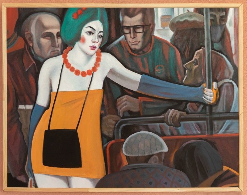 Холсты Константина Евтеева большие, письмо гладкое. Будто не холст, а стена, а на стене – фреска. Живопись –матовая, потому что мастер не любит блеск и в качестве разбавителя использует пинен, который вытягивает из краски лишний лак. Но цвета насыщенные, контрастные, сочетания их декоративны, а формы стилизованы. Лоск и блеск не нужны ни сюжетам, ни героям художника. Неизменная провинция. Теплая, привычная, уютная, с детства знакомая.