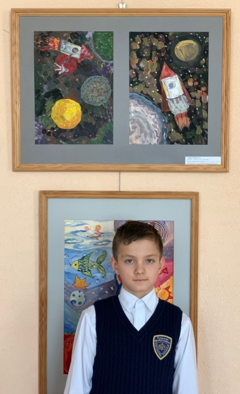 1 Таранюк Макар, 9лет, 2-ое МЕСТО Космос моей мечты (диптих). 2021 г.с., бумага, гуашь Преподаватель Соломатин Владимир Николаевич