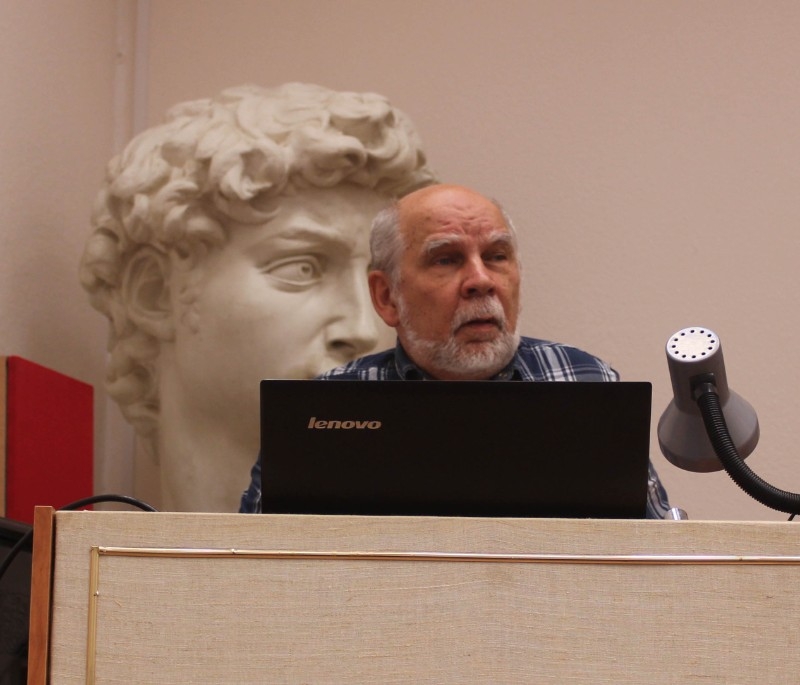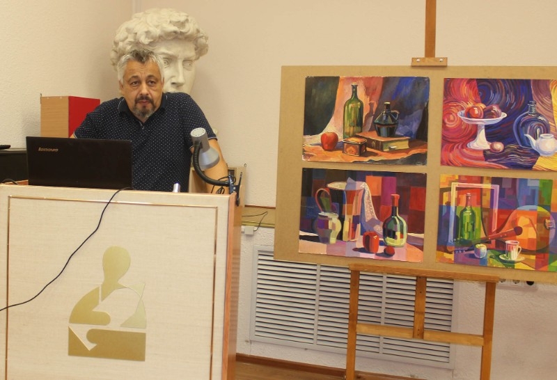 Соломатин Владимир Николаевич преподаватель высшей квалификационной категории, член Союза дизайнеров России, член Союза педагогов-художников России выступил с докладом «Методическая разработка «Декоративный натюрморт с зооморфным орнаментом. Плоскостное решение формы предмета».