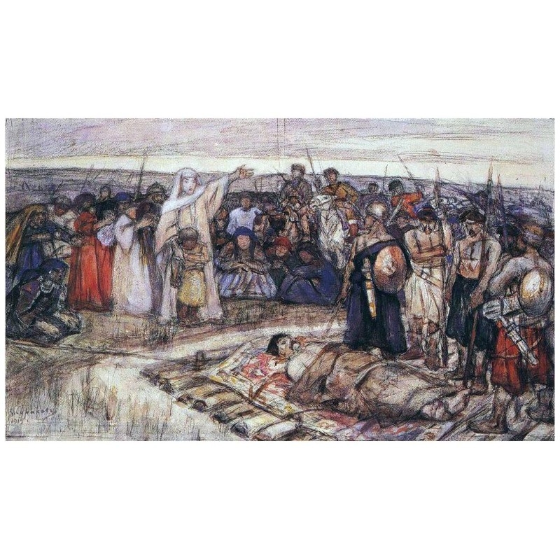 32. Василий Суриков. Княгиня Ольга встречает тело князя Игоря. 1915. Русский музей