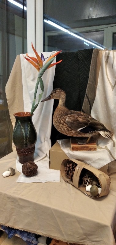 3. Натюрморт с чучелом птицы