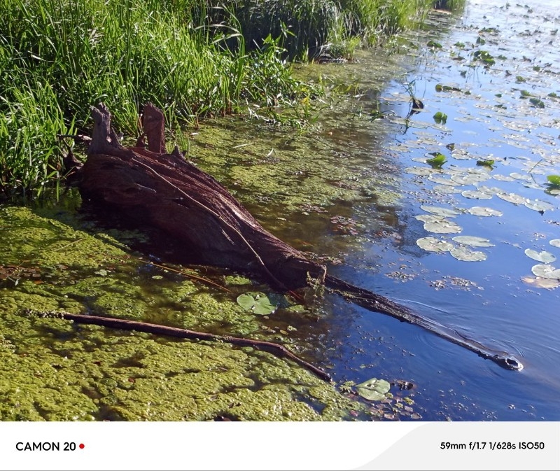 И тут появился он! Па-пааа-шка! Всплыл! Или не успел спрятаться. Лежит, дышит… Не боится! Выглядит не очень-то приветливо! Не известный науке зверь! Не замечает, что его рассекретили! Тёмная коряга с «ушками» и длинным «носом» покачивалась на воде. В круглое отверстие от сучка на «носу» заливалась вода и с шумом выплескивалась обратно, напоминая дыхание.