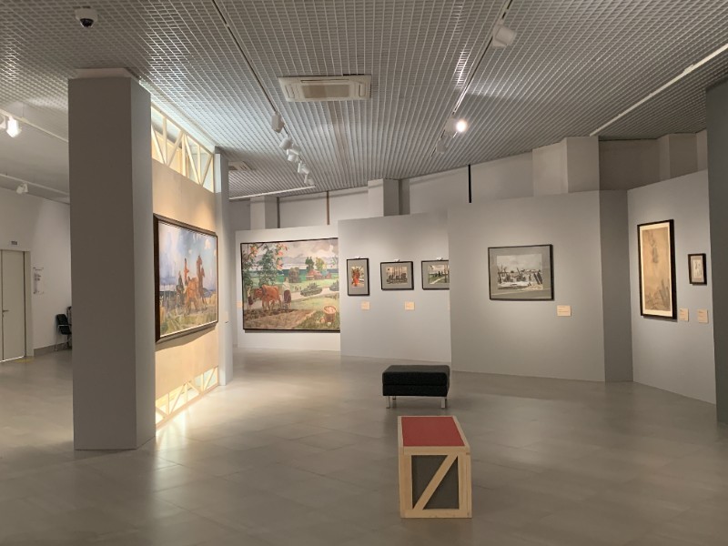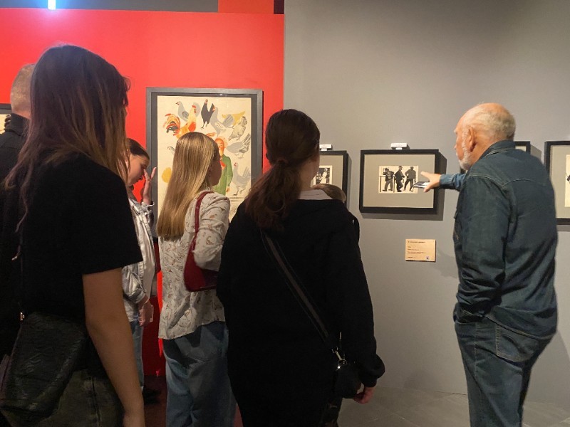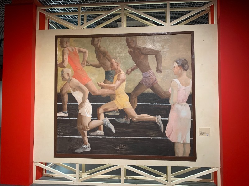 Экскурсию по экспозиции провёл куратор группы Соломатин В. Н. На выставке представлено около 110 экспонатов, включая живописные полотна, графику, плакаты и скульптуры, поступившие из собрания Государственного Русского музея и Курской государственной картинной галереи имени А.А. Дейнеки. Особое внимание привлекли две уникальные реставрированные мозаичные композиции Русского музея – «Утро» и «Хоккеисты», демонстрируемые публике спустя полвека. Работы распределены по двум этажам Фонда искусств, расположенные по тематическим направлениям: живопись военных лет, спортивные мотивы, графика и плакат. Выставочные пространства украшают деревянные некрашеные конструкции, символизирующие эпоху конструктивизма начала XX века. Посещение мероприятия позволило учащимся ознакомиться с ранними работами художника, в частности, его журнальной графикой. Уникальная страница в творческой биографии Дейнеки – посещение США и Европы в 1930-е. Поездки художников за границу тогда были крайне редки, тем ценнее этот пласт художественного наследия мастера. Учащиеся увидели акварельные зарисовки, запечатлевшие повседневную жизнь зарубежья. Особое место в экспозиции занимают спортивные сюжеты. Среди наиболее значимых полотен выделяются картина «Бег» (1932–1933 гг.) и уникальная фарфоровая фигура «Перед забегом» (1955 г.). Значительное место в искусстве Дейнеки всегда занимал спорт. Это нашло отражение во многих его произведениях, начиная с 1920-х. Тема спорта, гармонии сильного и здорового тела никогда не оставляла Дейнеку, в чем можно убедиться в экспозиции, увидев и пронизанный энергией движения «Бег» (1932—1933), и единственную в коллекции ГРМ фарфоровую фигуру Дейнеки «Перед забегом» (1955), и динамичных «рыцарей льда» - «Хоккеистов» (1959—1960).Таким образом, выставка позволила школьникам погрузиться в творческое пространство великого советского художника, осознать значение творчества Дейнеки в истории отечественного искусства и почувствовать атмосферу эпохи перемен и созидания.