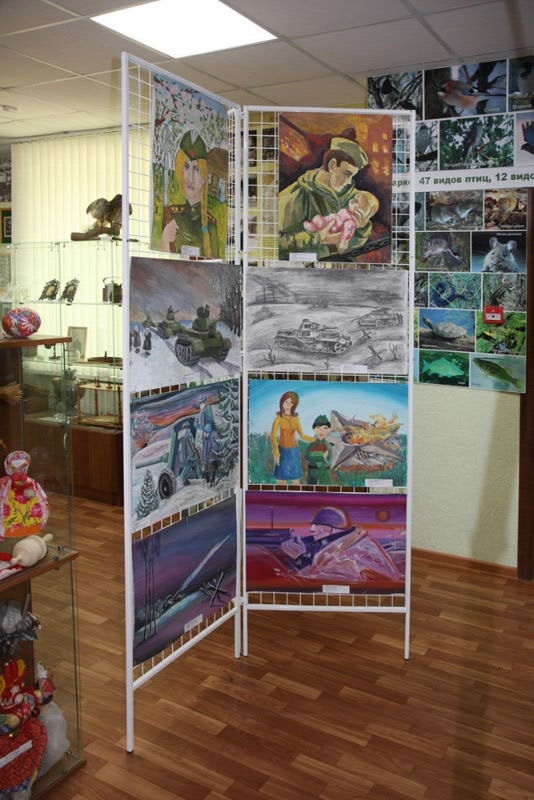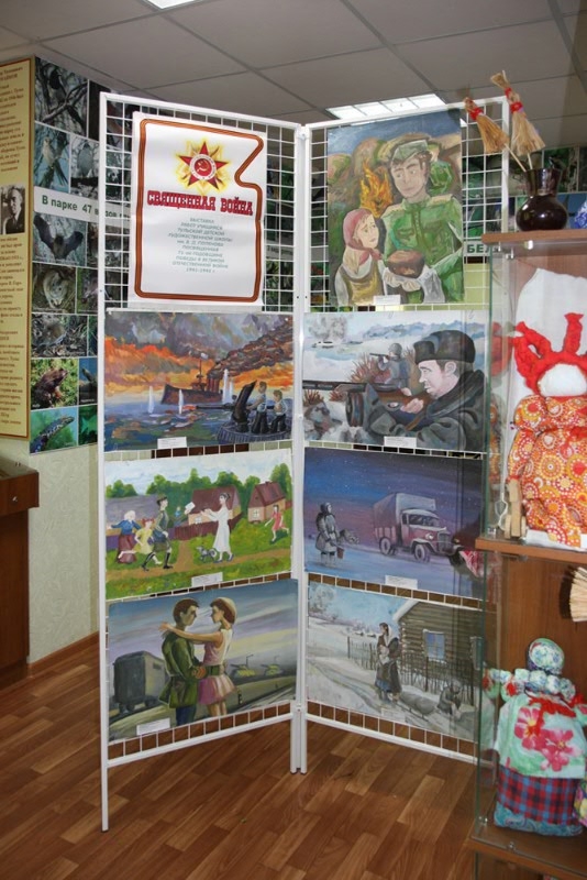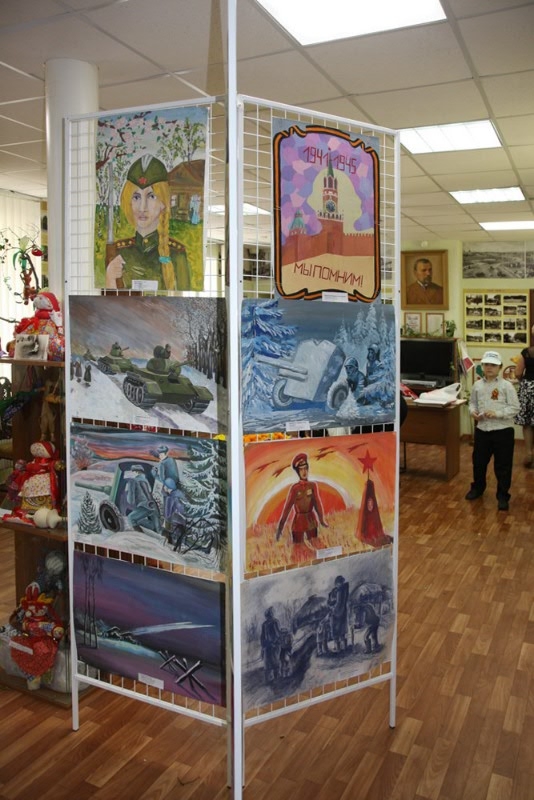 Преподаватели Глущенков Вадим Алексеевич, Голубенко Виктория Васильевна, Соломатин Владимир Николаевич, Войтюкова Инна Николаевна, Гаева Галина Константиновна, Глушнёва Лариса Николаевна, Ковалёва Ирина Григорьевна, Невская Надежда Михайловна представили работы своих учеников, посвященные Великой Отечественной войне, исполненные в разные годы обучения в ТДХШ им. В. Д. Поленова.