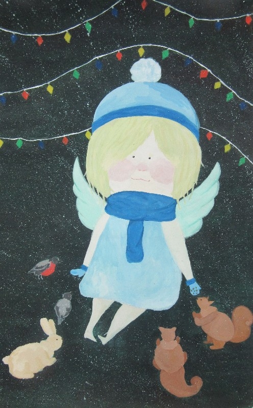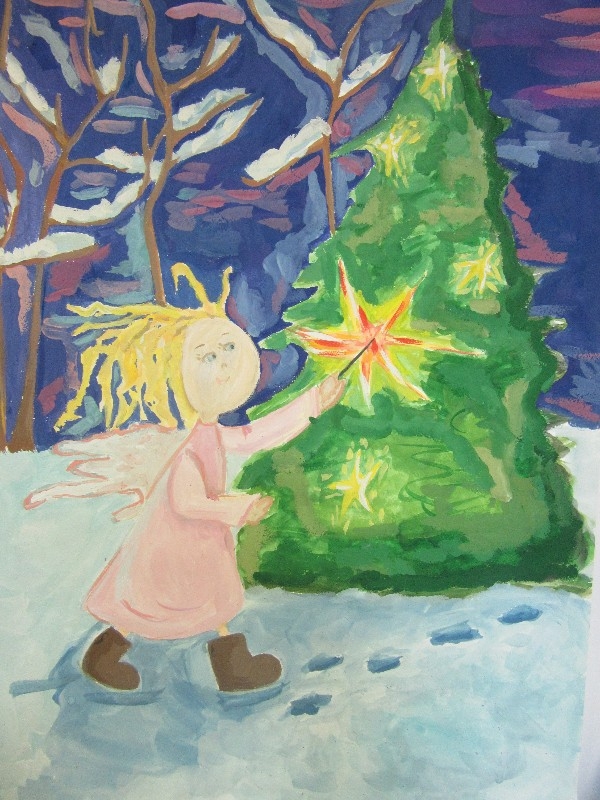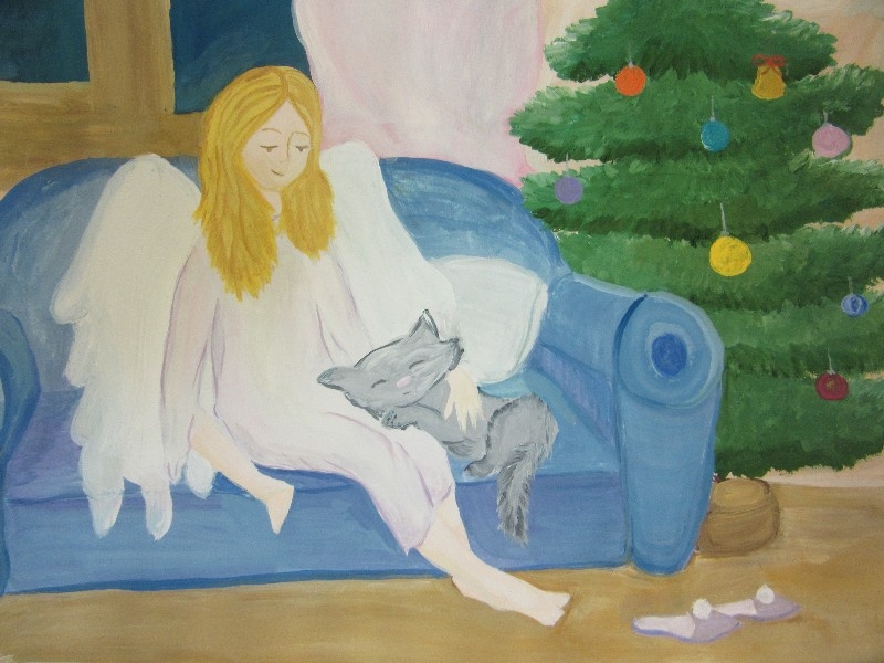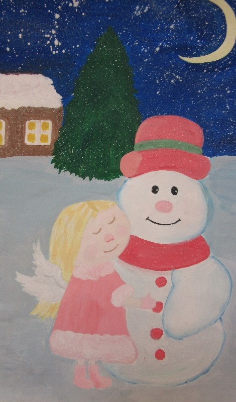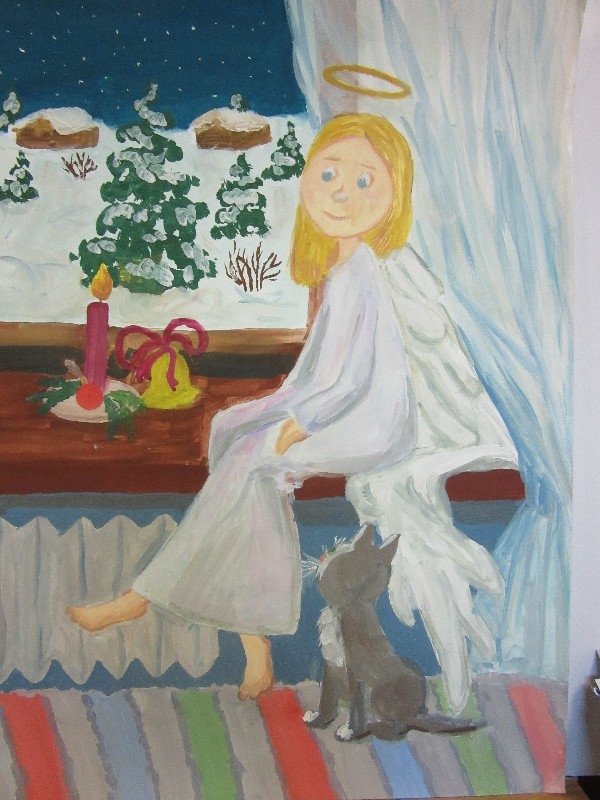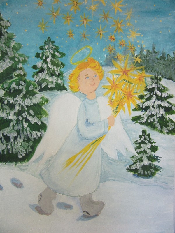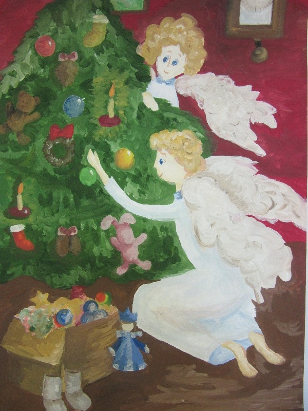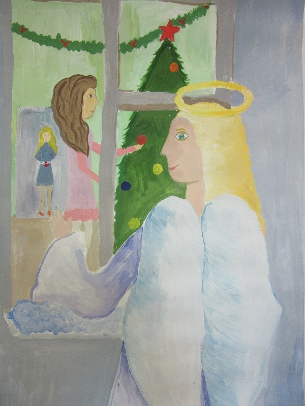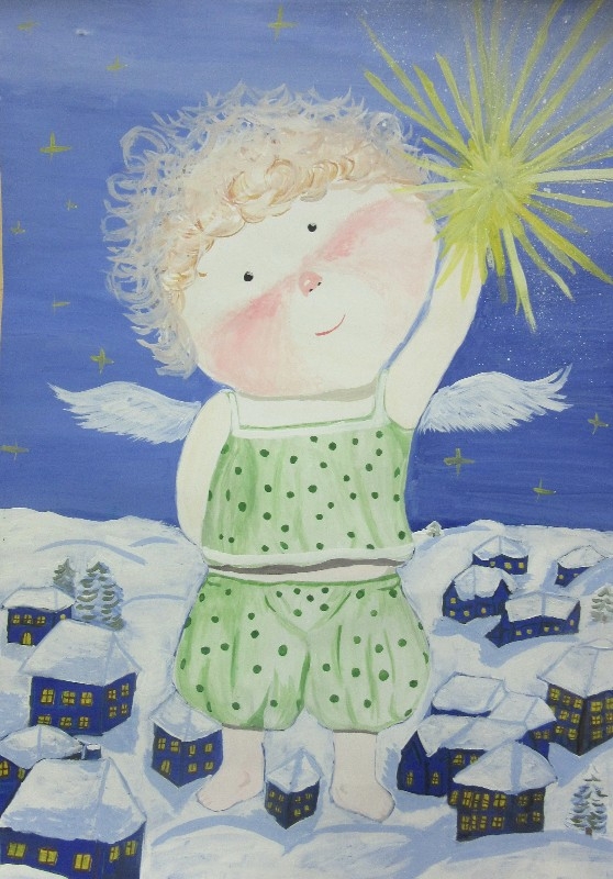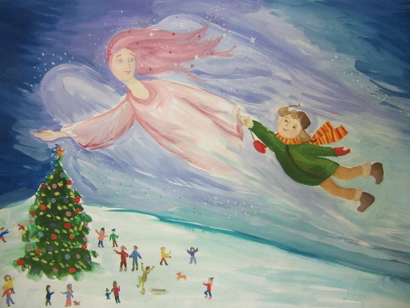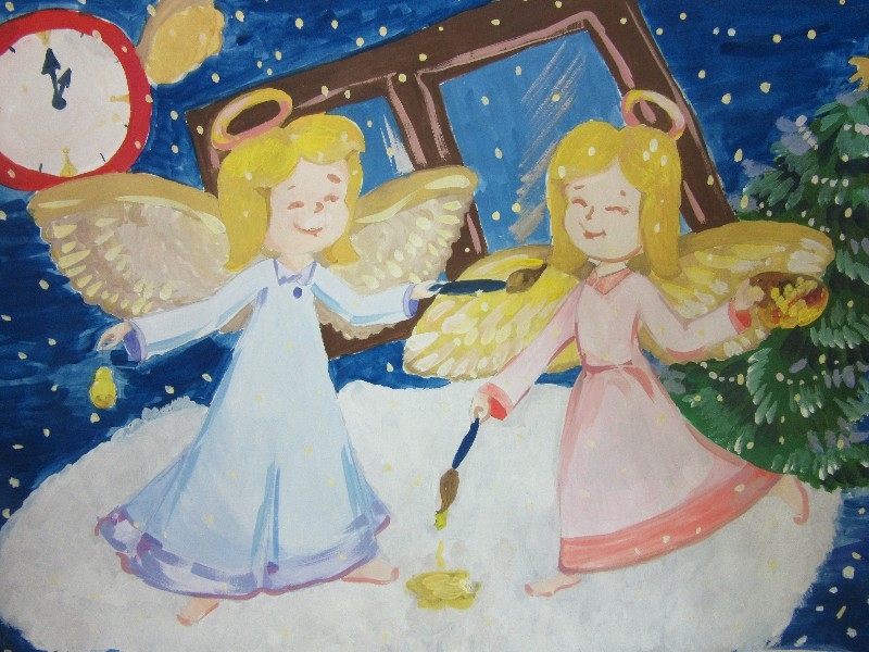 В преддверии Нового года и Рождества Детскую художественную школу посетили ангелы. Легкие, светоносные, неуловимые существа… Они стали героями рисунков учащихся разных классов. Ангелы разгуливают по облакам со свечами и колокольчиками; летают над городом, заглядывая в окна домов; оберегают сон детей и животных. Однако они не прочь пошалить, словно маленькие дети: весело болтают с голубями, украшают праздничную елку, рисуют красками и даже катаются на санках! Вот уж есть простор, где разгуляться фантазии!