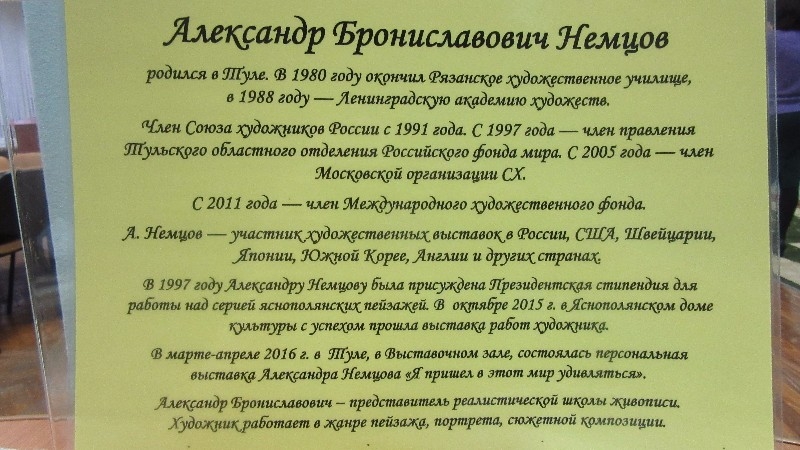 24 января 2017г. в Тульской областной универсальной научной библиотеке открылась выставка живописи Александра Немцова «Солнечная палитра Александра Немцова».