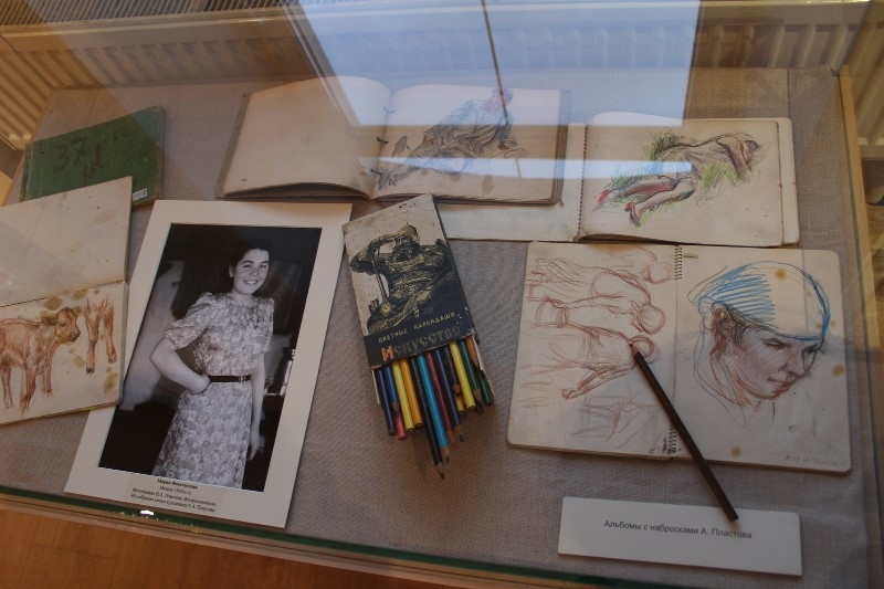 На выставке представлена живопись Аркадия Пластова из личного собрания семьи художника («Автопортрет с книгой», «В старой Прислонихе», «Тая Репина», «Петр Григорьевич Черняев»), из собрания Тульского областного художественного музея, а также репродукции его работ из фондов Государственного музея Толстого и Государственной Третьяковской галереи. Гости увидят фотографии и личные вещи мастера – одежду, палитру, альбомы с набросками, эскизы, карандаши, фотографии из семейного архива.