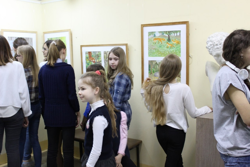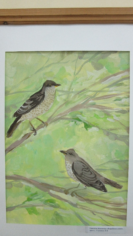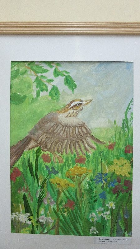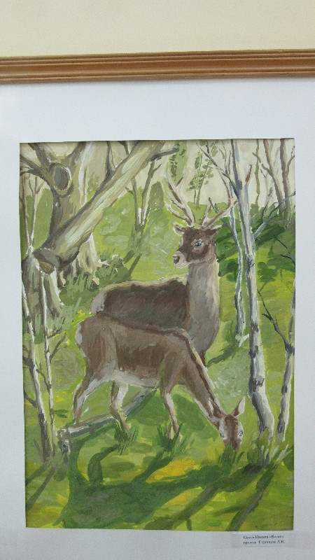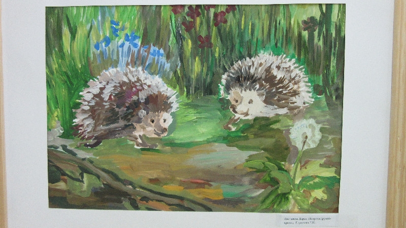 В школьной выставке приняли участие работы детей на тему природы: зарисовки трав, птиц и зверей; композиции с обитателями поля и леса; пейзажи. Рисунки были подготовлены в классах преподавателей Гаевой Галины Константиновны и Глушневой Ларисы Николаевны.