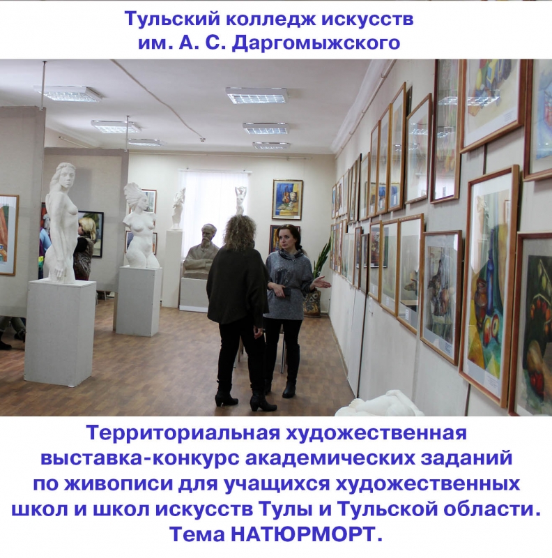 17 февраля 2018 года в выставочном зале Тульского колледжа искусств им. А. С. Даргомыжского открылась территориальная художественная выставка-конкурс академических заданий по живописи для учащихся художественных школ и школ искусств Тулы и Тульской области. Тема НАТЮРМОРТ.